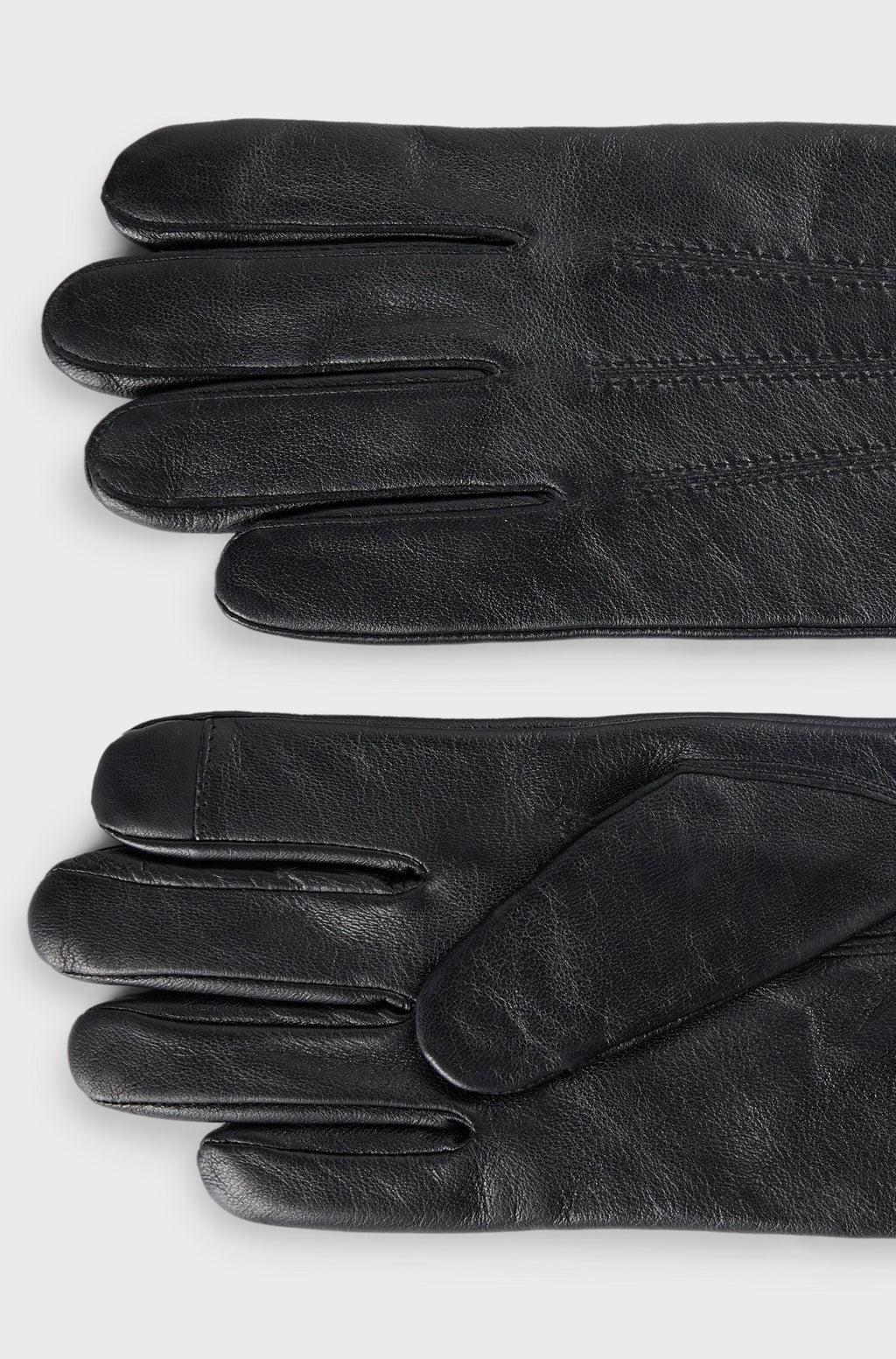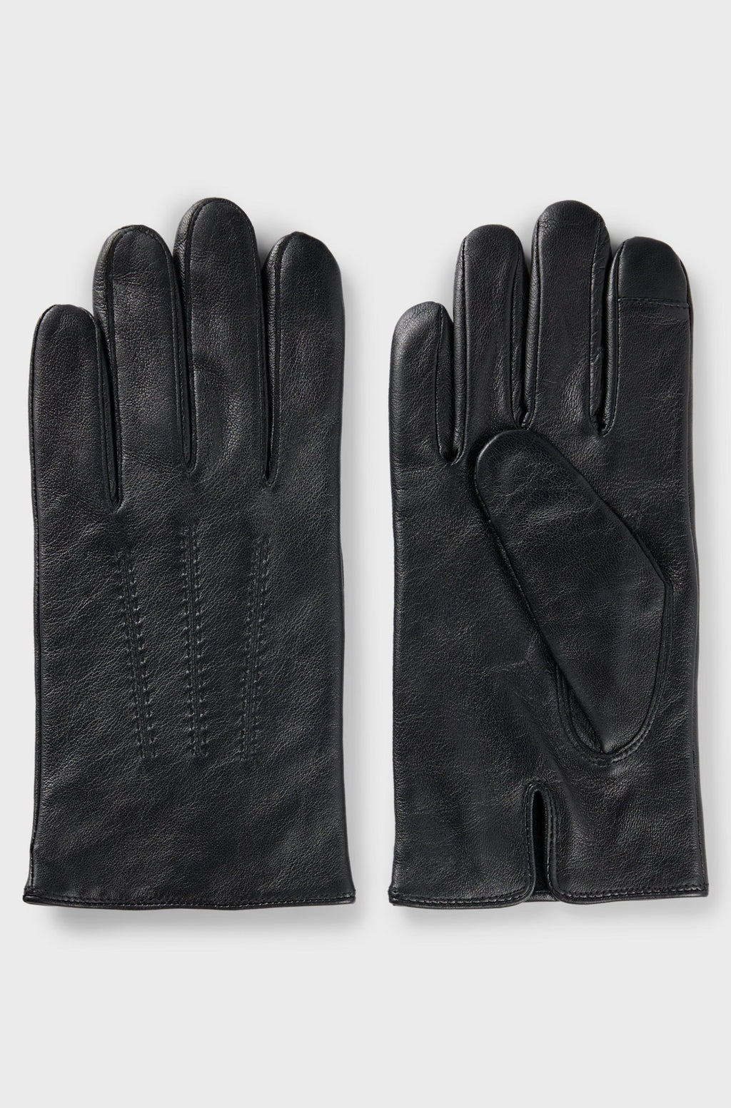 Touchscreen-friendly gloves in leather with metallic logo lettering