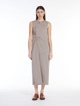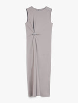 Add a playful touch to your wardrobe with the Max Mara Fluid Jersey Dress. The sleeveless round-neck design features a bias-cut hem and central cut detail at the back for added flair. The draped detail on one side is accentuated by a removable metal buckle, adding movement to the silhouette. Perfect for any occasion, this dress flares towards the hem for a flattering fit.