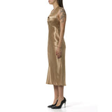 The Max Mara Glizia Dress is the perfect combination of femininity and refinement, with its deep neckline and draped front. The unique and quirky design features a wide shoulder that creates an almost half sleeve and crosses in a deep motif at the back. The dress is completed with a hidden zipper and a form-fitting silhouette that falls gracefully into a pencil skirt. A must-have for any fashion-forward woman!