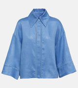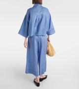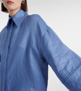 Introducing the Max Mara Robinia Linen Canvas Shirt. Made with lightweight pure linen canvas, this shirt features a classic pointed collar, long low set in sleeves, and a yoke and central pleat detail at the back. The front fastening and long cuffs are adorned with delicate openwork embroidery, while the covered button fastening adds a touch of sophistication. Elevate your wardrobe with this statement-making piece.