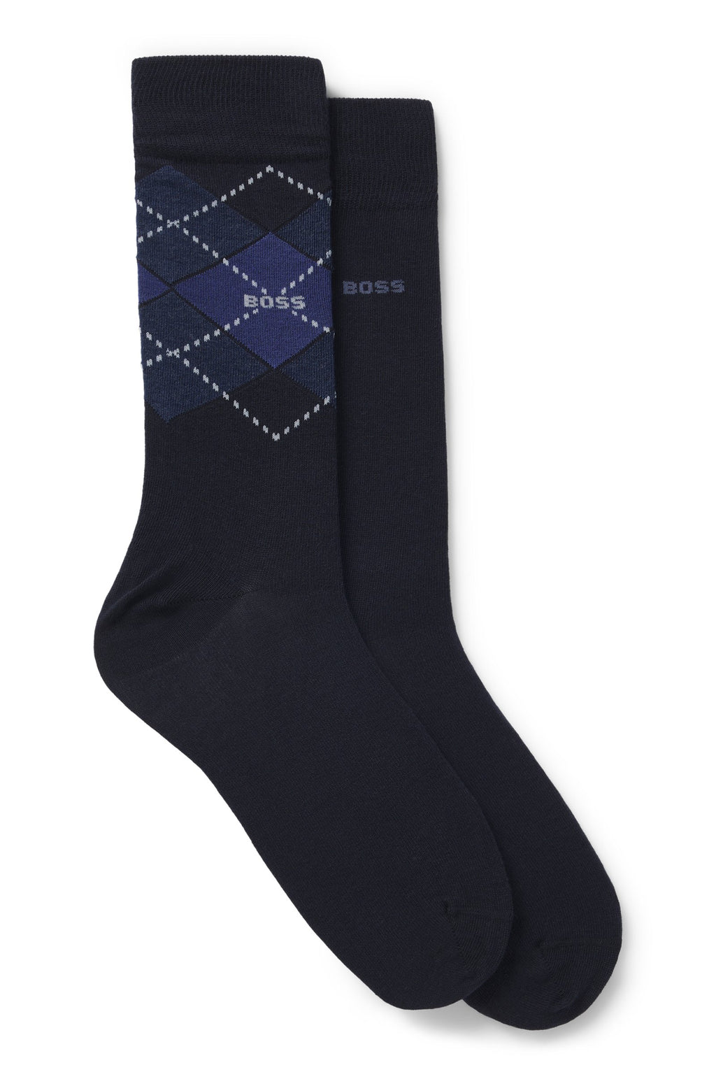 Sock it to 'em with this BOSS two-pack featuring one solid style and one sharp Argyle design. Both crafted in a comfy cotton-blend and cut to regular length, you'll have the perfect pair for any occasion—whether you're keeping it classic or adding a little pattern to your step. Double the socks, double the style.