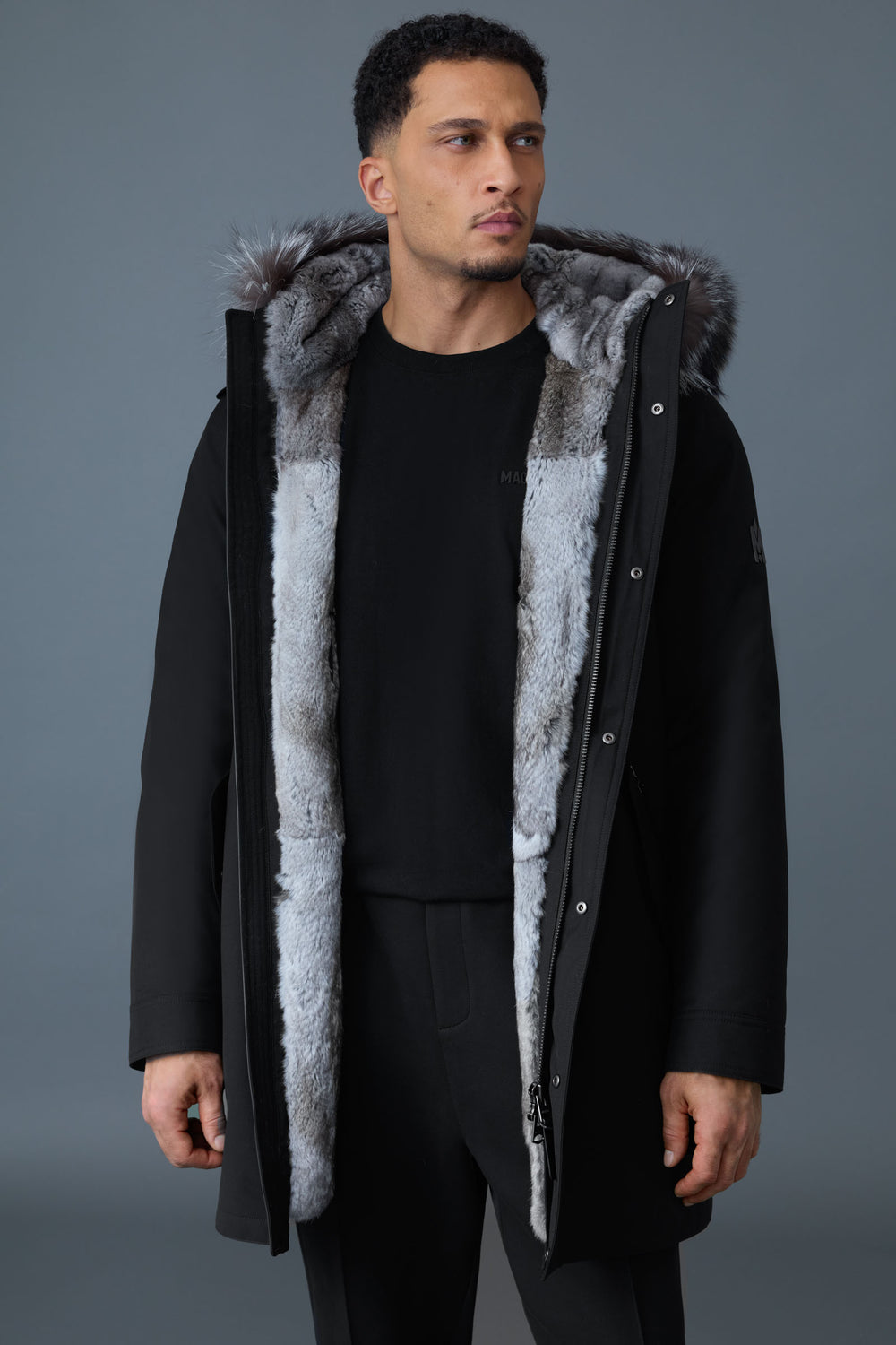 Meet the MORITZ twill parka, a men’s winter hero lined with soft rabbit fur inside the body and hood. Brave the chill with its removable silver fox fur trim, water resistance, and windproof design. Cozy storm cuffs, down-filled sleeves, and leather drawcords at the waist keep warmth locked in, while double-entry zip pockets add style and function. Rated for Arctic temps down to -25°C, this relaxed-fit parka is perfect for layering and winter adventures with a playful edge. Stay warm, look sharp, and let the cold slide right off!