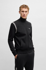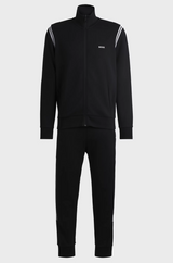 Get ready to boss every workout in style with this signature tracksuit by BOSS Menswear. Made with stretchy cotton, it allows for maximum movement while still looking good. The hooded zip top features seam pockets and a flat-knit cuff, while the standard length pants have convenient stripe inserts.