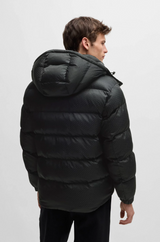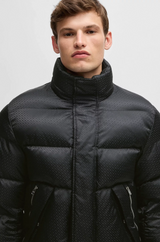 Stay stylish and dry with the Boss Water-Repellant Puffer Jacket. The straight fit and detachable hood give you versatility, while the micro monograms add a touch of luxury. Don't let the rain stop you from looking your best.