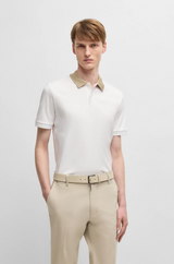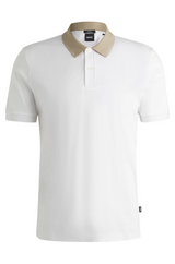 Upgrade your polo game with this slim-fit, ultra soft and lustrous cotton shirt by BOSS Menswear. The playful block stripe on the collar adds a quirky touch to this classic piece, complete with side slits and a logo flag. Boss up your style with this must-have polo shirt.