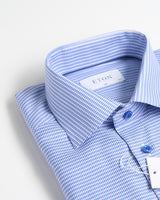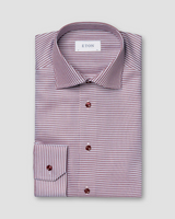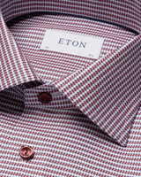 Introduce a playful twist to your business casual look with our Eton Houndstooth Signature Slim-Fit Twill Shirt. Made with soft touch, wrinkle-free fabric, this shirt features a cutaway collar and single cuff, perfect for sharp tailoring. The three-color houndstooth pattern adds a touch of elegance, while tone-in-tone buttons add a unique flair.