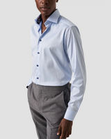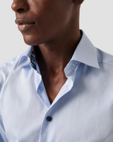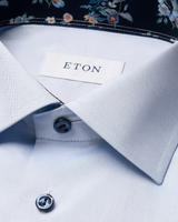 Upgrade your dress shirt game with the Eton Slim Fit Dress Shirt. Made with 100% organic cotton and featuring our popular Signature Twill fabric, this shirt offers fine texture, added comfort, and outstanding crease resistance. Its timeless style is elevated with a navy floral pattern inside the collar and cuffs and sharp navy buttons.