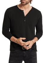 Elevate your everyday style with the John Varvatos Walden Henley in Broken Stitch. This classic black henley features a sleek, slim fit and a 5-button placket that adds just the right amount of flair. Crafted from 100% cotton, it’s soft, breathable, and perfect for layering or rocking on its own. Whether you’re heading out for a casual day or a night on the town, this minimalist piece effortlessly keeps you looking sharp and feeling comfortable.