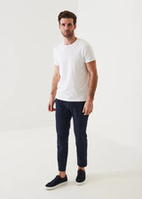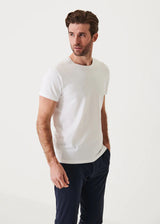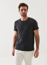 Patrick Assaraf's iconic crewneck t-shirt is made from a Peruvian pima cotton stretch fabric. The fabric is pre-shrunk prior to garment construction, minimizing shrinkage and offering long-lasting performance. It has a luxurious silky hand feel and the added feature of stretch for extra comfort. This is a highly versatile item and an ideal layering piece.