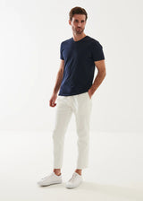 Patrick Assaraf's v-neck t-shirt is made from a fine Peruvian pima cotton stretch fabric. The fabric is pre-shrunk prior to garment construction, minimizing shrinkage and offering long-lasting performance. It has a luxurious silky hand feel and the added feature of stretch for extra comfort. This is a highly versatile item and an ideal layering piece.