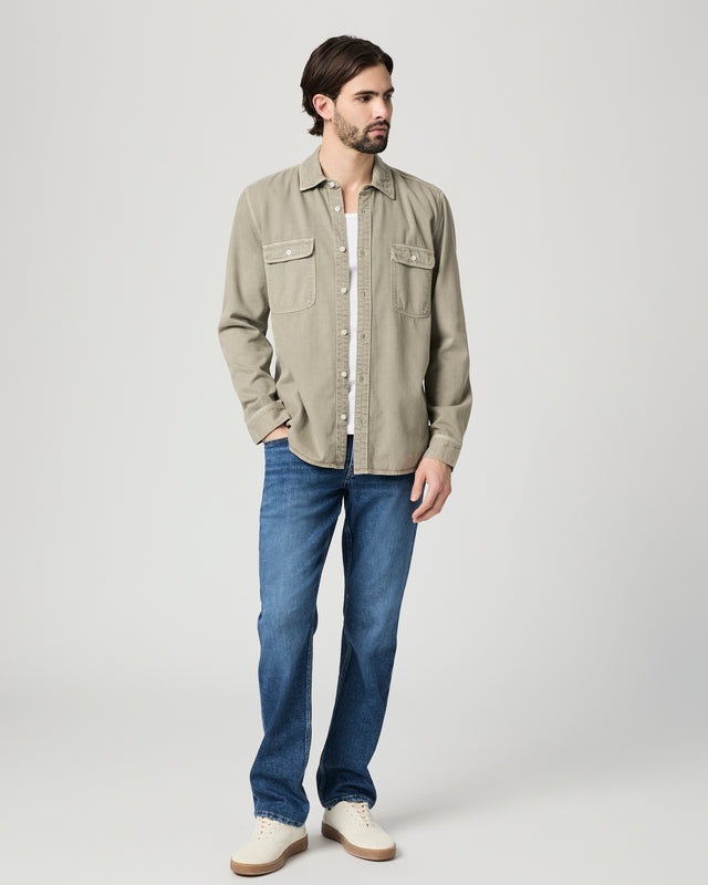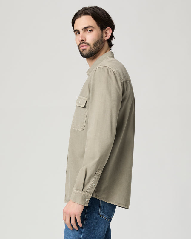 Slip into effortless style with the Paige Martin Shirt—a timeless long-sleeve button-up that feels as good as it looks. Crafted from a buttery-soft slub twill blend that drapes beautifully, this piece features a sophisticated muted khaki tone that whispers vintage charm. The 81% cotton and 19% modal composition keeps things breathable and luxuriously comfortable all day long. Our model (185 cm/6'1") is wearing a size M, so you know exactly what to expect.