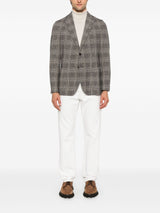Introducing the Circolo 1901 Prince of Wales Check Blazer! Made with a textured cotton blend and featuring a front button fastening, notched lapels, and long sleeves with buttoned cuffs, this blazer is both stylish and functional. Complete with a chest welt pocket, two front patch pockets, and English rear vents, it's a must-have for any fashion-forward individual.