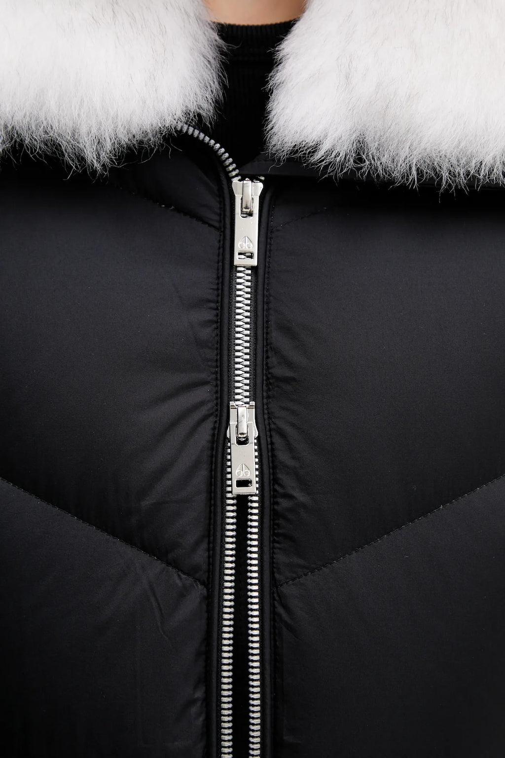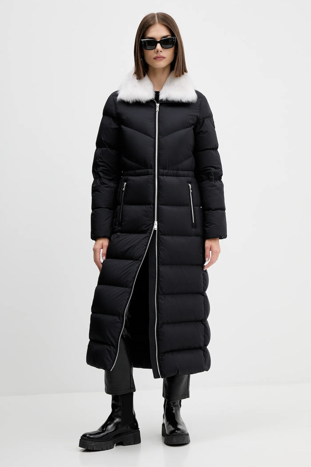 This MOOSE KNUCKLES Belle Cote SH down jacket is your cozy companion for chilly days, crafted from sleek fabric with a snug quilted design filled with natural down for superior warmth. It features a collar with detachable faux fur and a raised neckline for extra chill defense. Zip it up easily thanks to the handy zipper closure, and stash your goodies in the zippered pockets. The straight cut keeps you comfy and moving freely. Size S measurements: sleeve 57 cm, length 121 cm, chest 45 cm, shoulder 38 cm. Outer and lining: 100% polyester; filling: 90% duck down, 10% feathers.