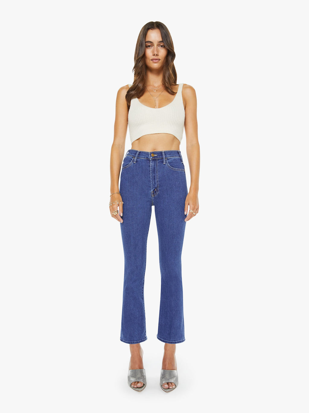 Don’t settle for less—go for it all. MOTHER’s Fall 25 capsule, The Hustler, celebrates a decade of our fan-favorite fit with a fresh 9-piece lineup inspired by 1970s flair and toughness. The iconic high-rise flare features an ankle-length cut, zip fly, and crisp hem. Crafted from stretchy denim, Side Gig shines in a vintage-style mid-blue wash with a sleek pressed front crease. Proudly made in Los Angeles using premium imported fabrics. Composition: 95% Cotton, 3% Polyester, 2% Polyurethane.