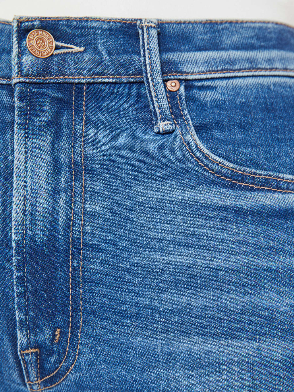 Radical vibes! These high-rise straight-leg jeans feature a 32-inch inseam with a crisp hem. Crafted from stretchy denim, the mid-blue Bitchin' style shows off subtle whiskering and knee fading. Proudly made in Los Angeles using top-quality imported fabrics. Fabric blend: 78% Cotton, 16% Modal, 4% Polyester, 2% Elastane.