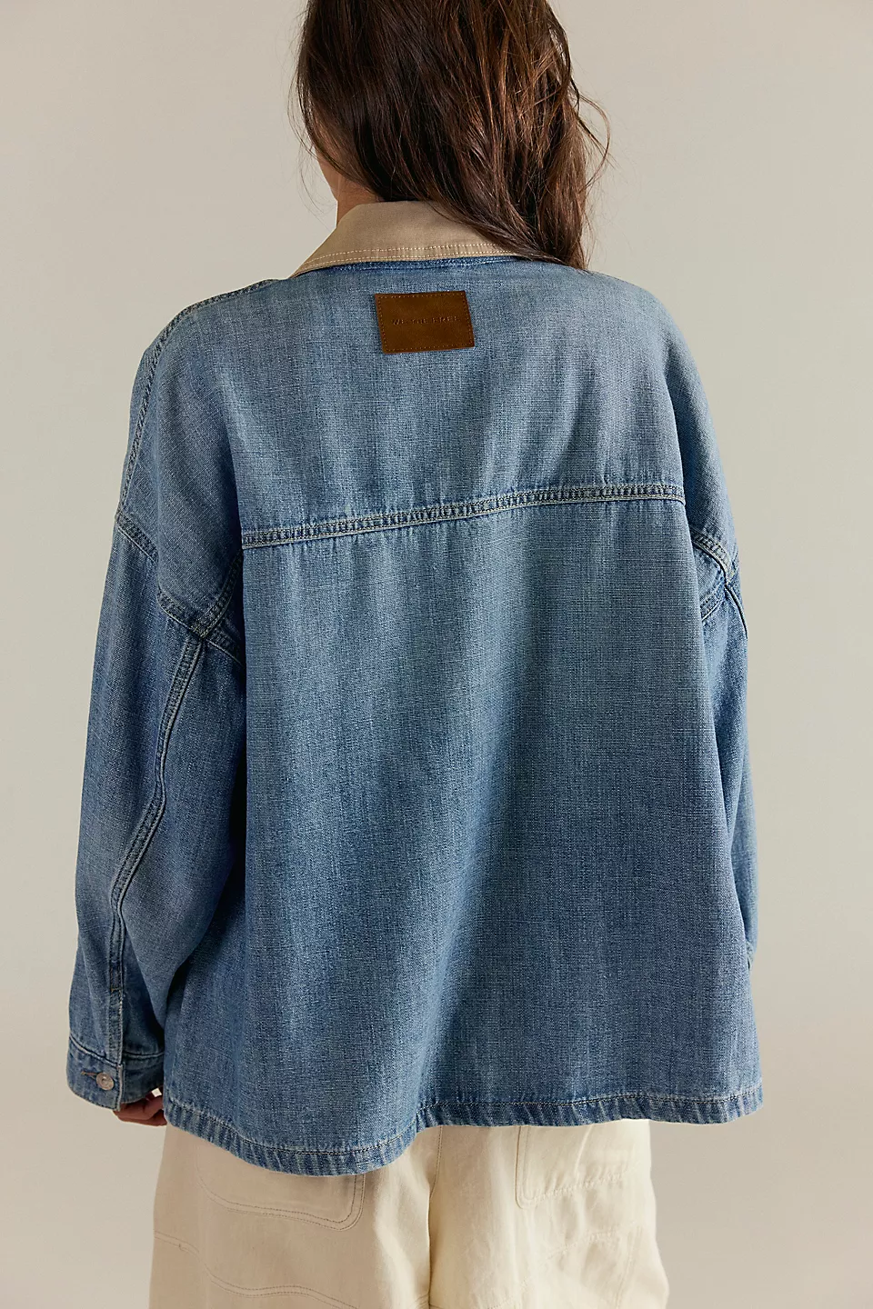 Throw on this We The Free denim jacket and embrace that effortlessly cool vibe. The oversized silhouette pairs perfectly with everything in your closet, while the contrasting canvas collar and asymmetrical pockets add just enough personality to keep things interesting. Crafted from comfortable denim with drop-shoulder sleeves and a button-front closure, it's the kind of piece that gets better with every wear. Your new favorite layering essential awaits.