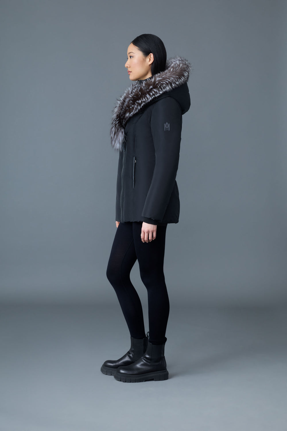 Meet the ADALI-X, a chic recycled down coat made for women who want to brave winter in style. It rocks our Signature Collar trimmed with luxe silver fox fur and an edgy asymmetrical zipper. Designed to keep you cozy down to -20°C, it’s packed with 800 fill power duck down and crafted from windproof, water-repellent fabric. With cozy insulated leather pockets, storm cuffs, a hidden hood toggle, and a sleek fitted silhouette, this longline coat keeps you warm and looking fabulous. Fun fact: it’s made for layering lightly—though sizing up works if you prefer a puffier vibe!