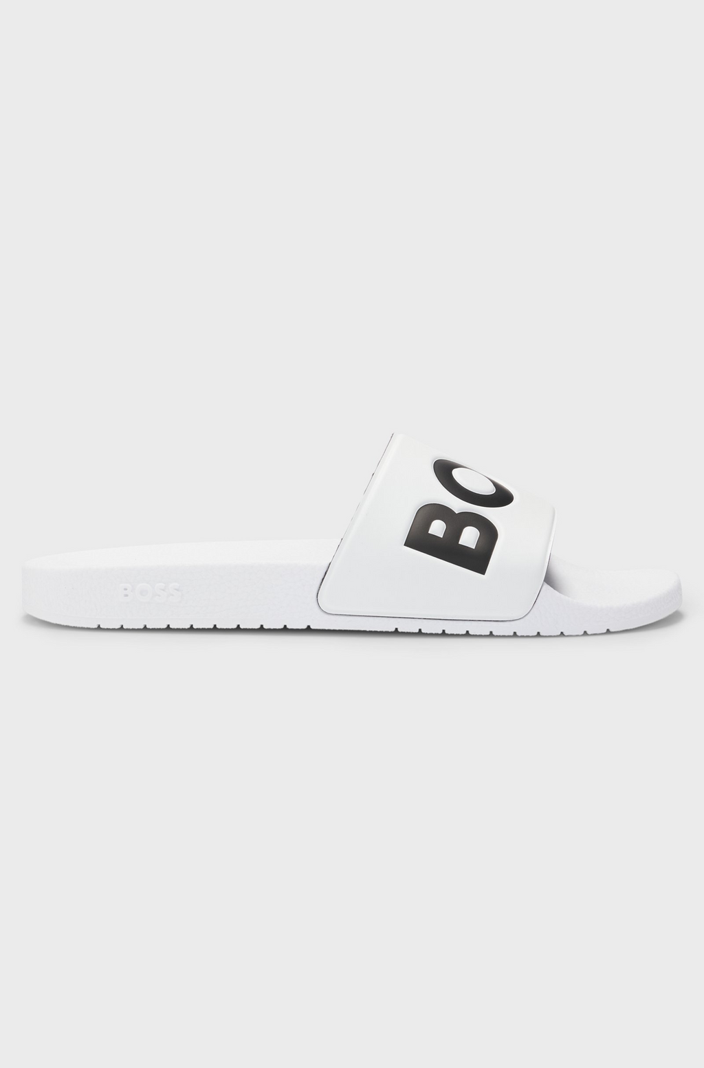 Add a statement touch to everyday looks with the bold, contrasting logo of these BOSS Menswear slides. Crafted in Italy from lightweight materials. Slip-on fastening for easy wear. Partially lined for comfort. Arrives in branded packaging. Upper: 98% polyvinyl chloride, 2% polyurethane. Lining: 100% polyester. Sole: 70% polyvinyl chloride, 30% thermoplastic polyurethane.