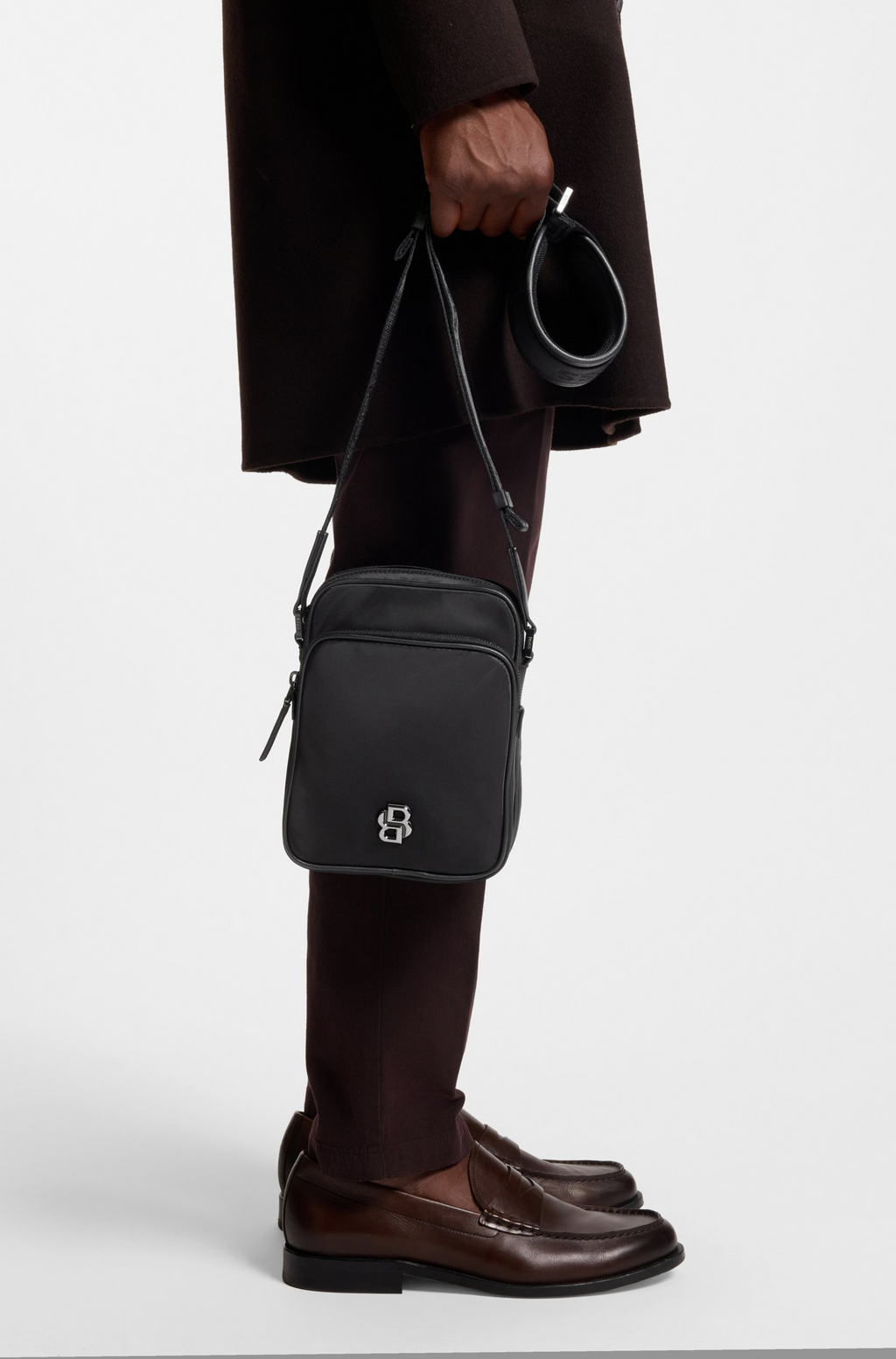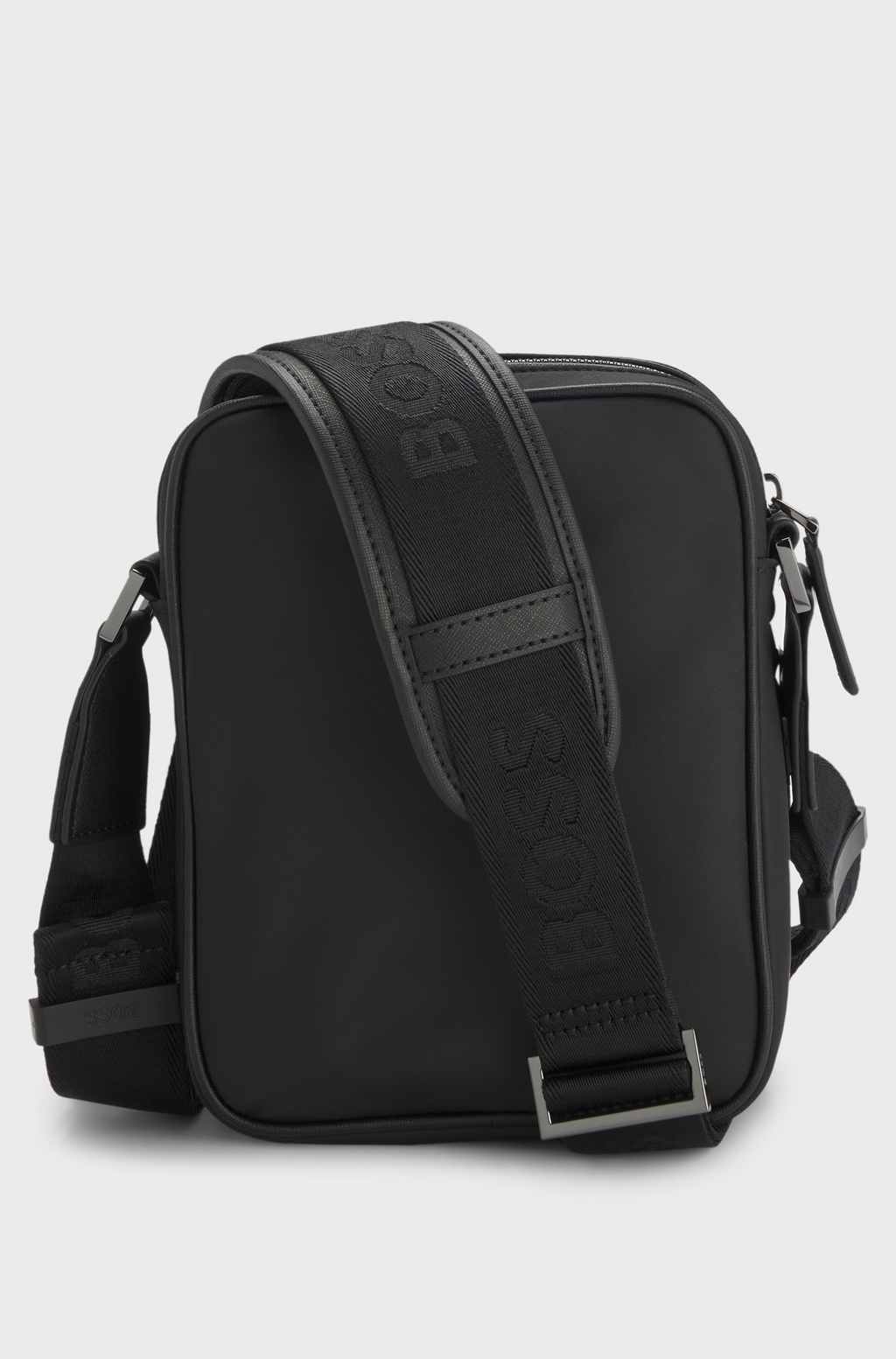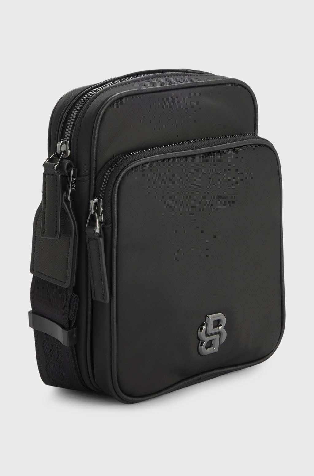 The BOSS Reporter bag combines understated luxury with everyday practicality. Crafted in smooth, matte twill, this compact silhouette features a polished gunmetal Double B monogram and matching hardware for a refined finish. The adjustable shoulder strap adapts to your carry style, while the zip closure and interior open pocket keep essentials secure and organized. At 20.5 x 7 x 16 cm, it's sized perfectly for documents, a tablet, or daily necessities. A logo plaque adds the final touch of sophistication.
