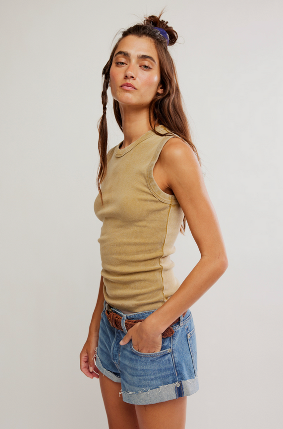The Murphy Tank in Dill Seed is your new layering MVP. This soft, ribbed cotton blend hugs you in all the right ways with just enough stretch to move through your day without thinking twice. The crew neckline and roomy armholes keep it effortlessly cool and minimal throw it under a blazer, tuck it into high-waisted denim, or let it stand solo. That rich green shade? It's basically friends with everything already hanging in your closet. Versatile, comfortable, and ready for whatever comes next.