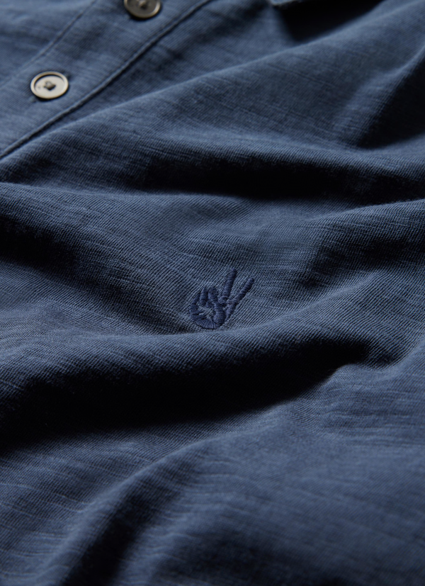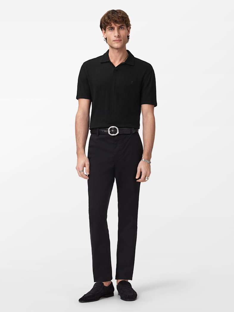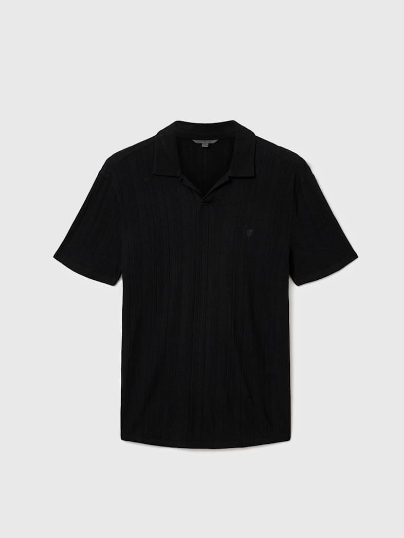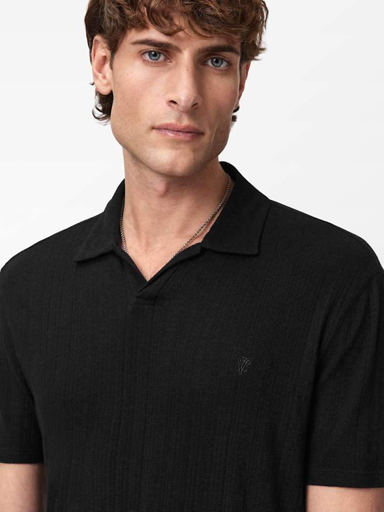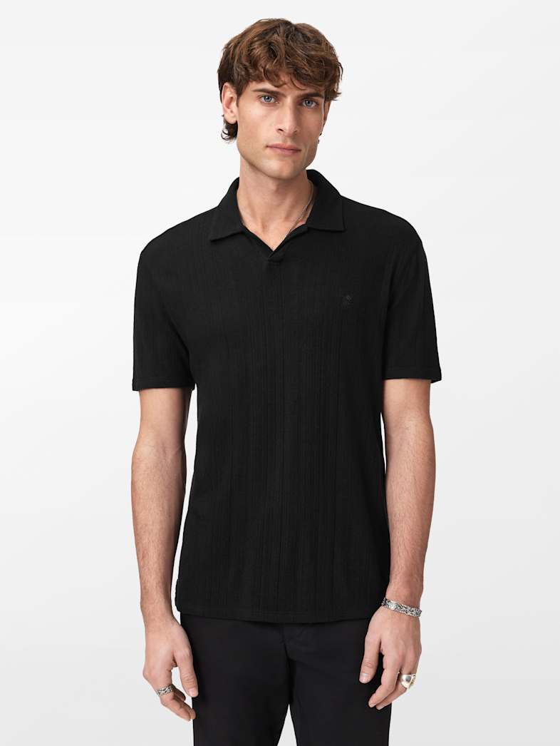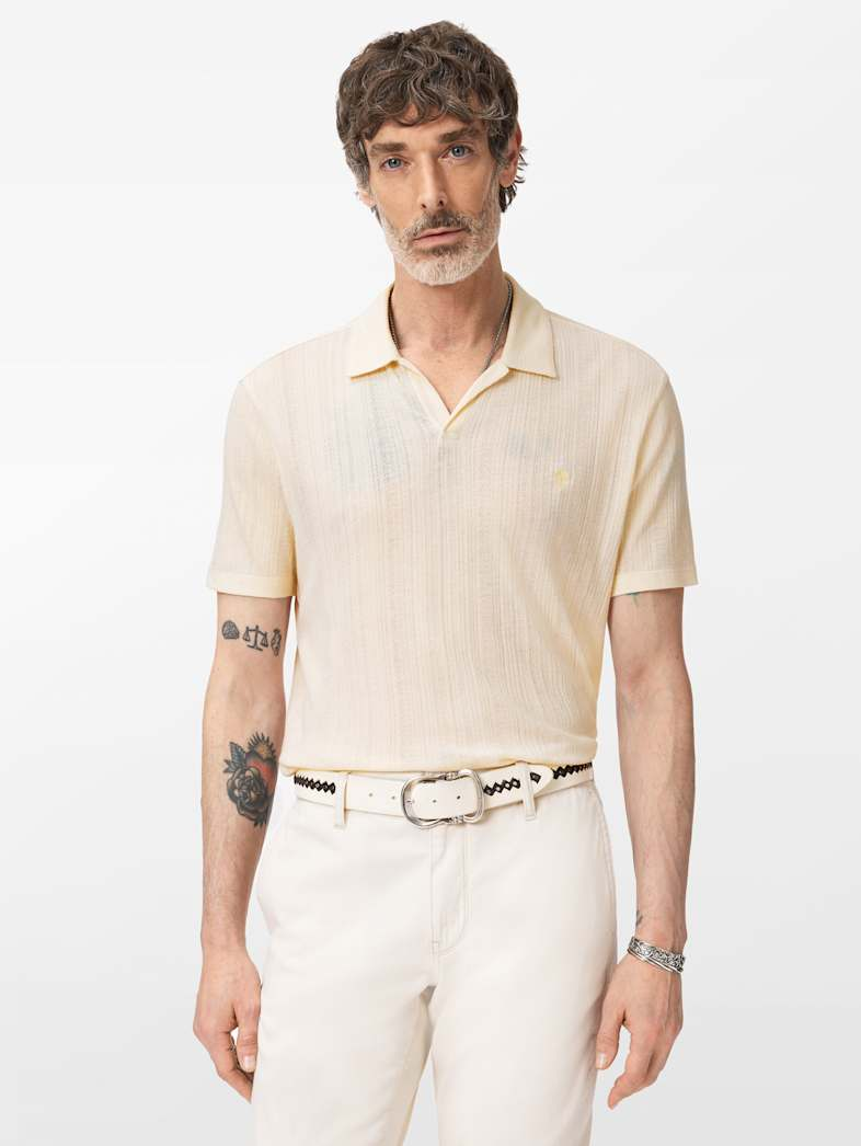 The Leonardo Polo is designed with a clean Johnny collar and a relaxed short-sleeve profile that feels modern and unfussy. Knit in a textured, variegated rib, the fabric has a loftier hand that adds depth while remaining soft and comfortable against the skin. Subtle details including side slits for ease of movement and understated logo embroidery at the chest give the piece quiet distinction without interrupting its streamlined look. Textured variegated rib knit with a soft, lofty feel Johnny collar with short-sleeve silhouette Side slits for comfort and ease of movement Subtle chest logo embroidery with flag label branding
