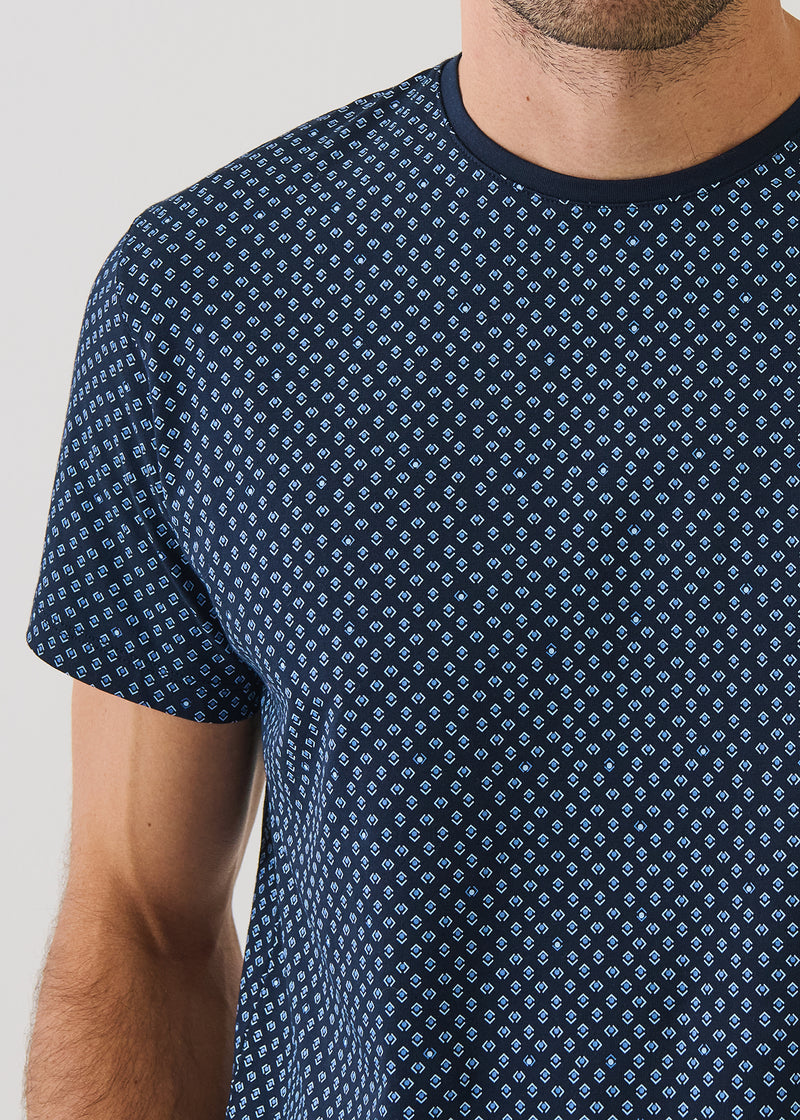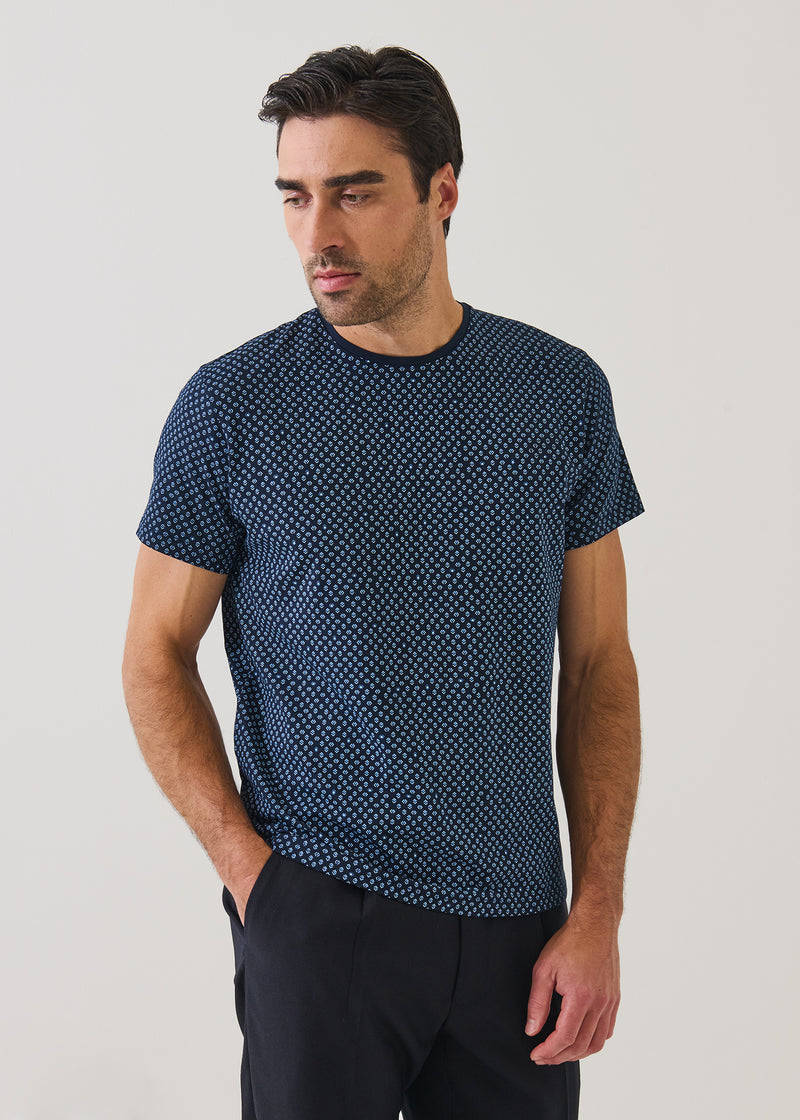 Crafted from premium Peruvian pima cotton with stretch for all-day comfort, this crewneck features an elegant micro medallion print that captures resort-inspired style. The fabric drapes beautifully with a sleek, tailored fit perfect for pairing with jeans, shorts, or minimalist trousers. Versatile enough for casual weekends or elevated everyday wear.