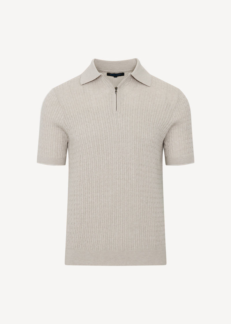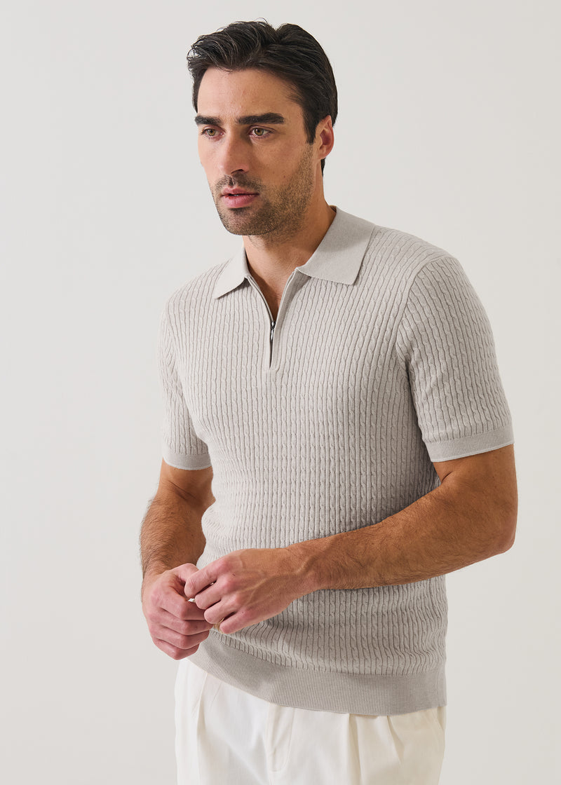 Patrick Assaraf Cotton Blend Baby Cable Zip Polo Elevate your warm-weather rotation with this refined short-sleeve zip polo, expertly crafted from a sumptuous cotton-blend yarn that delivers exceptional softness and polish. The subtle baby cable texture creates visual interest and dimension, while the streamlined zip placket introduces a contemporary edge. Seamlessly balancing relaxed comfort with sophisticated styling, this versatile piece transitions effortlessly from weekend casual to elevated occasions a wardrobe essential for the discerning dresser.