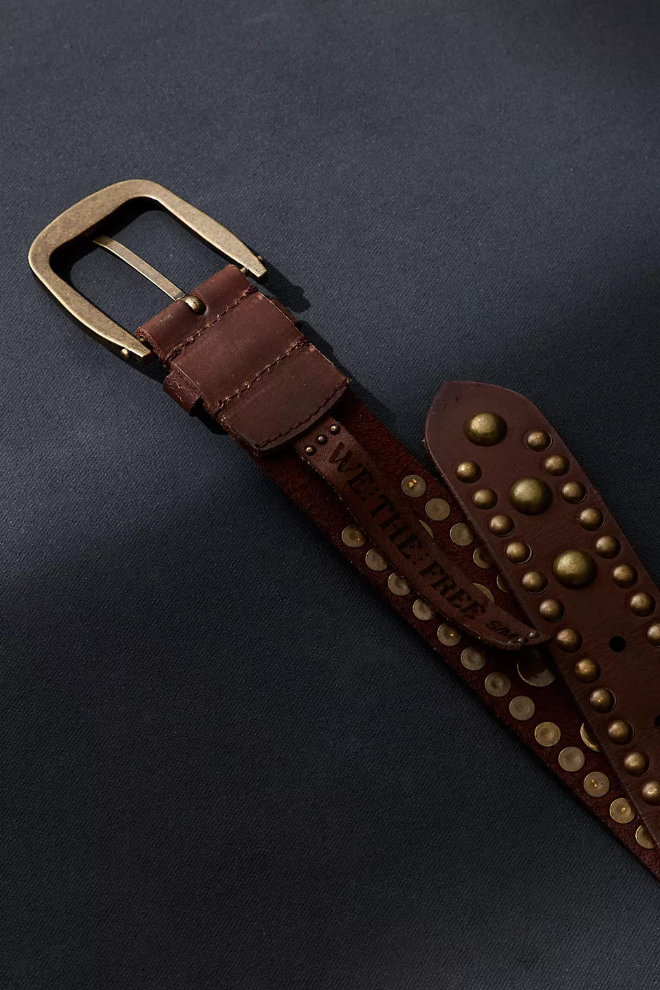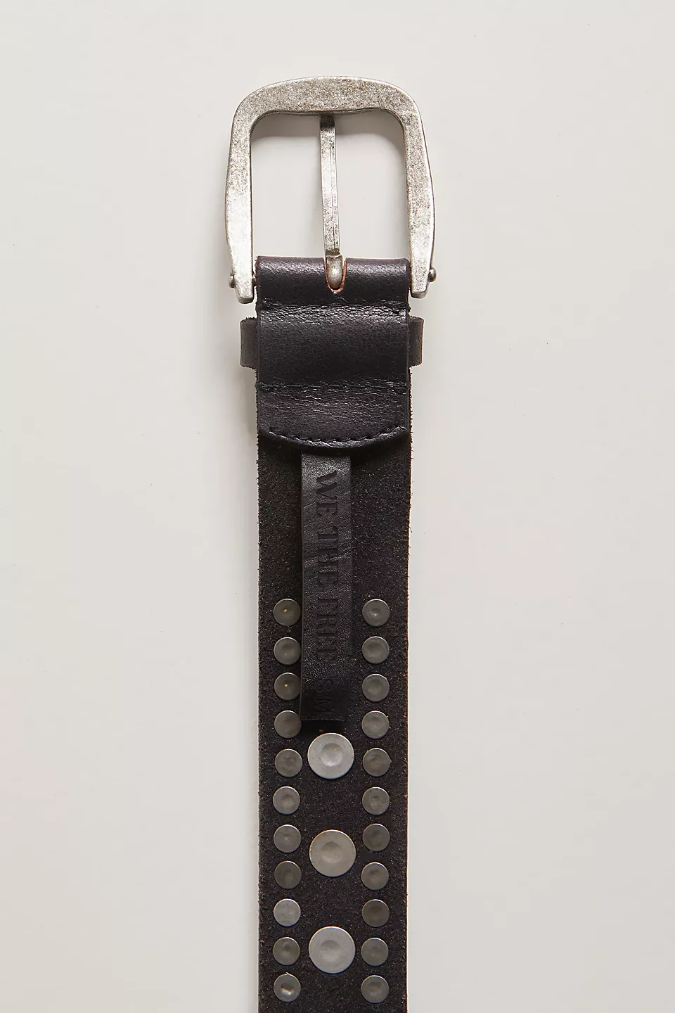 Cinch, stud, and strut. This We The Free leather belt brings heritage cool to your everyday rotation with rounded stud details that catch the light just right. Medium width, adjustable buckle, and that lived-in vibe that makes classics feel fresh. The kind of accessory that does the heavy lifting literally shaping your silhouette while adding serious character to denim, dresses, or anything in between.